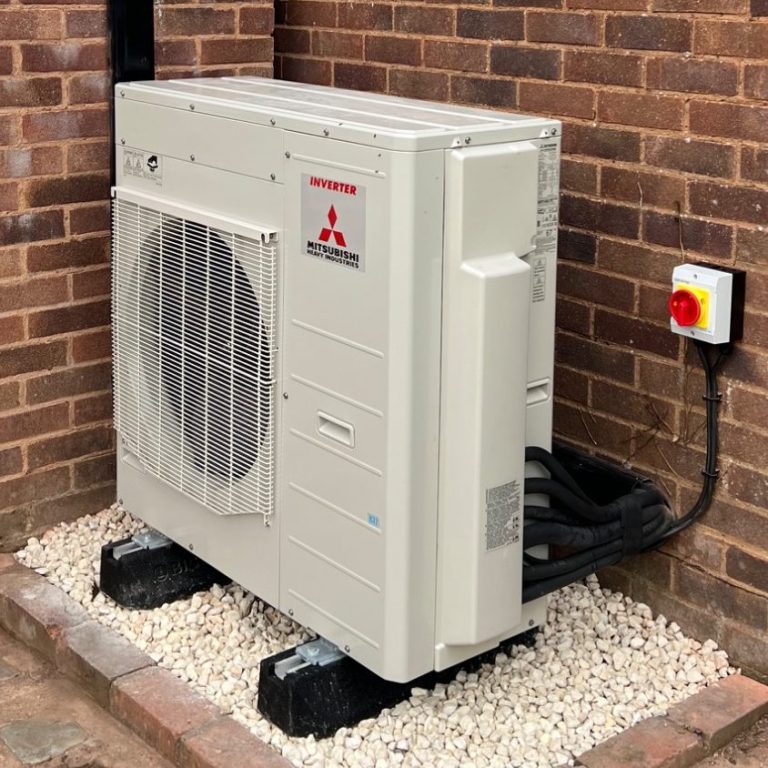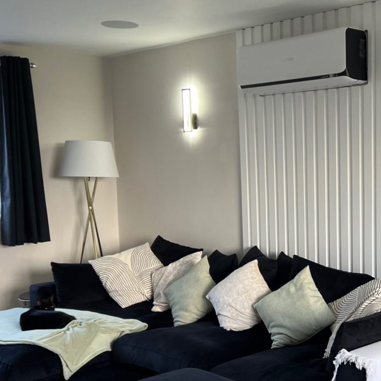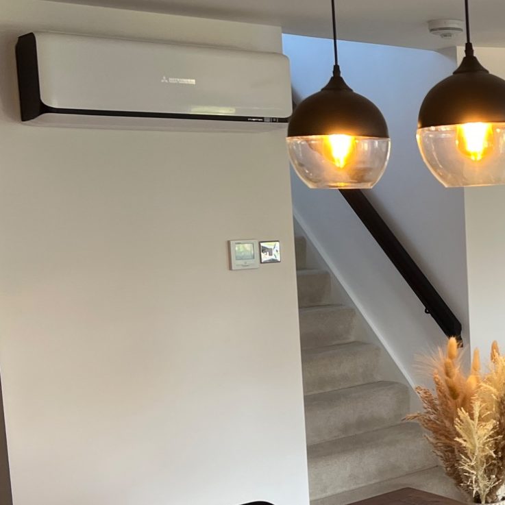 For this kitchen diner, the customer chose the most efficient MHI system available. Used as the main source of heating in the customers forever home, with efficient SCOP of 5.2. Plus cooling when the kitchen gets hot. Win win!
